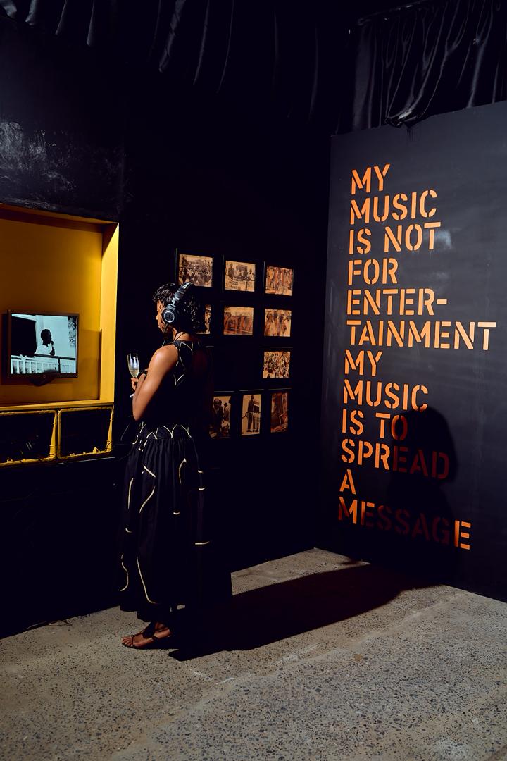 The Library section showcases how Fela’s political consciousness was deepened through his encounters with various figures and extensive reading. Later sections draw connections to his global resonance and enduring legacy in music, politics, fashion and youth culture.